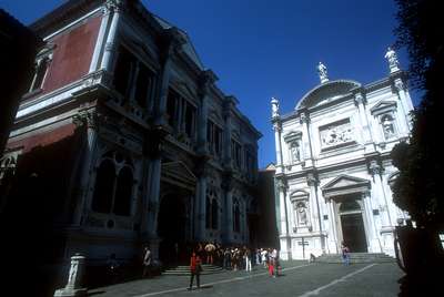 San Marcos Piazza (above), detail from Doge's Palace (right) |
