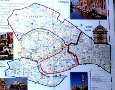 After leaving Breschia, we made our way across the bridge to Venice... Venice is actually a collection of hundreds of islands - off the north eastern coast of Italy. In the late 400's AD, the Roman Empire was disintegrating and Attilla the Hun took advantage of that to move south. The Venetians decided to move off the mainland and onto these islands to avoid that invasion. Over the centuries they built up the islands, bridging from one to another with pilings and building on top of them - to the point where the separation between islands became hard to see. The canals of Venice are the remnants of the passageways through the islands. From about 1200 to 1500 AD Venice was a major power in the Meditteranean, perhaps the pre-eminant naval power in the world. The Venetians took advantage of this to plunder treasures from around the world and bring them back to the homeland, making Venice what it is today. Marco Polo's adventures began and ended in Venice. If you’d like a bit more on Venice’s history, check here. |