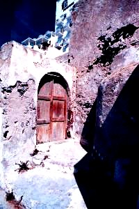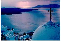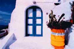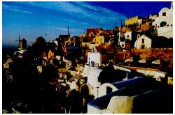 Tony was absolutely truthful, the beach (remnants of the volcanic explosion) was beautiful, the room was clean and perfectly adequate, but after a day of scootering around the island (we rented one in Piressa for a few days) we decided we had to find a place on the cliff overlooking the caldera |
